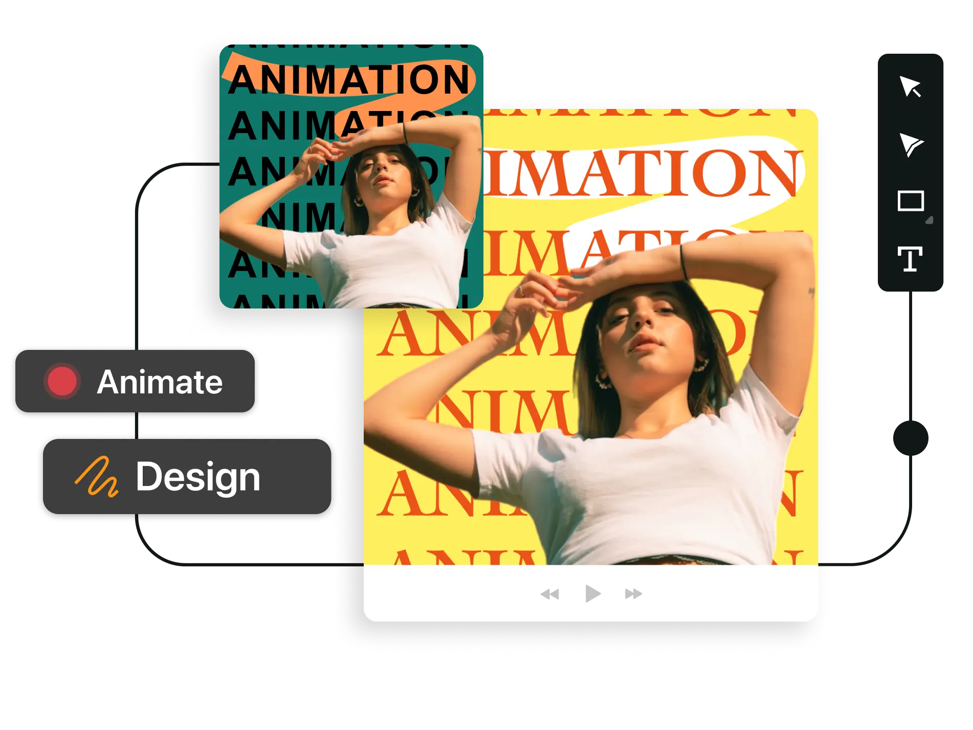 Work with audio, video, SVGs, and images, and export in MP4, MOV, GIF, or any resolution you need.